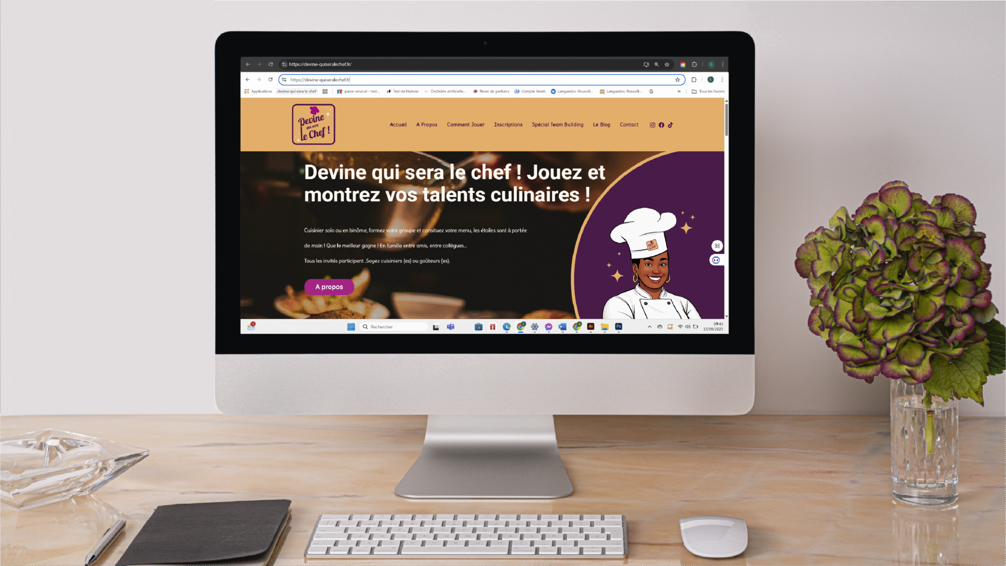 Le logo : Il allie des éléments symboliques forts (la toque), des couleurs percutantes et évocatrices (curry et fuchsia), et une typographie expressive  pour créer une identité cohérente et mémorable. L’ensemble est à la fois professionnel et ludique, captant l’attention tout en reflétant l’esprit gourmand et interactif du site. Ce design devrait séduire les visiteurs et leur donner envie de plonger dans l’aventure culinaire proposée. L’association de cette palette de couleurs vibrantes et de des polices soigneusement choisies crée une harmonie visuelle qui reflète l’univers culinaire du site.
